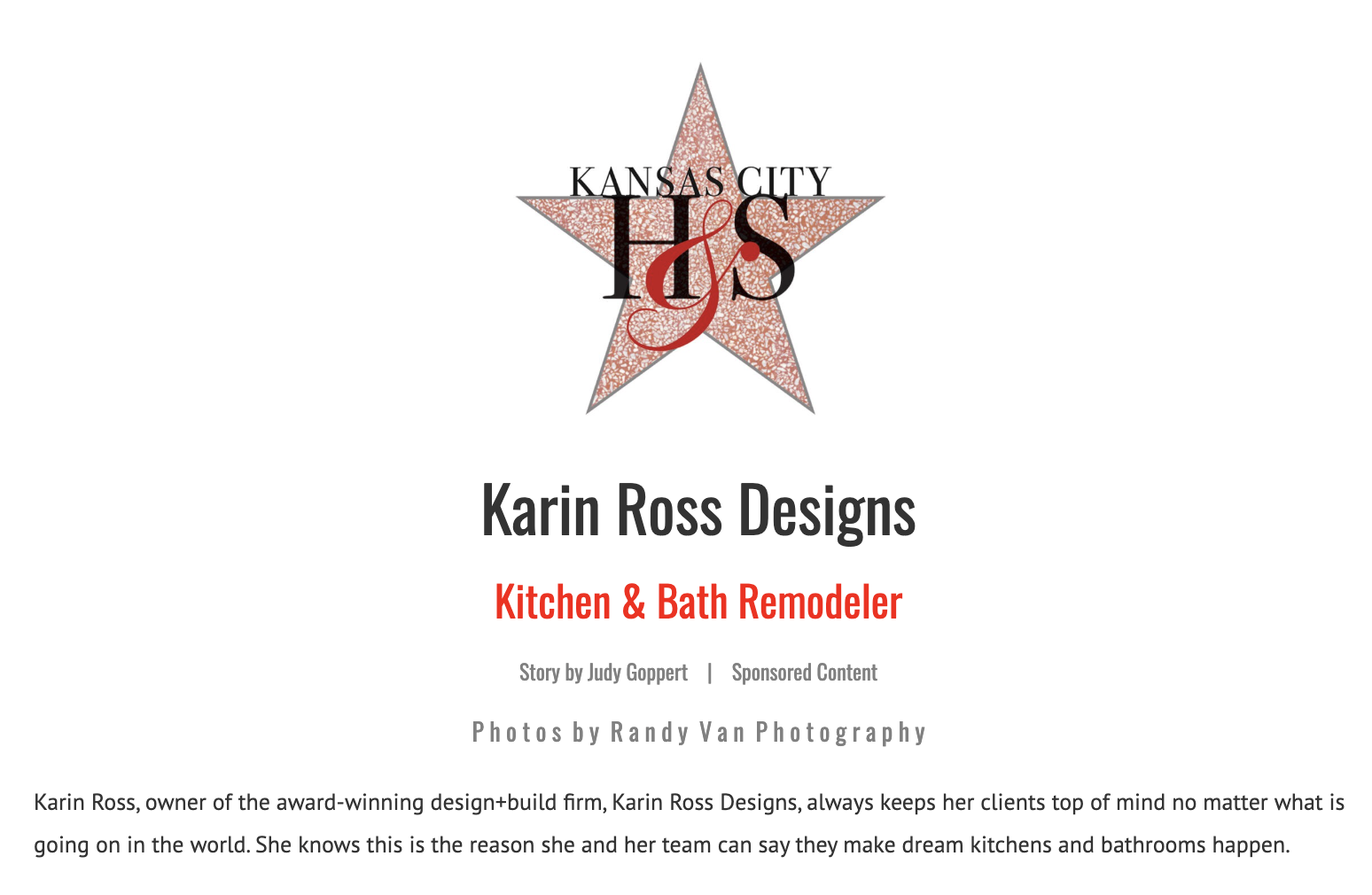 Profile feature showcasing Karin Ross Designs’ expertise in full-home renovations and luxury interiors across the Kansas City area.